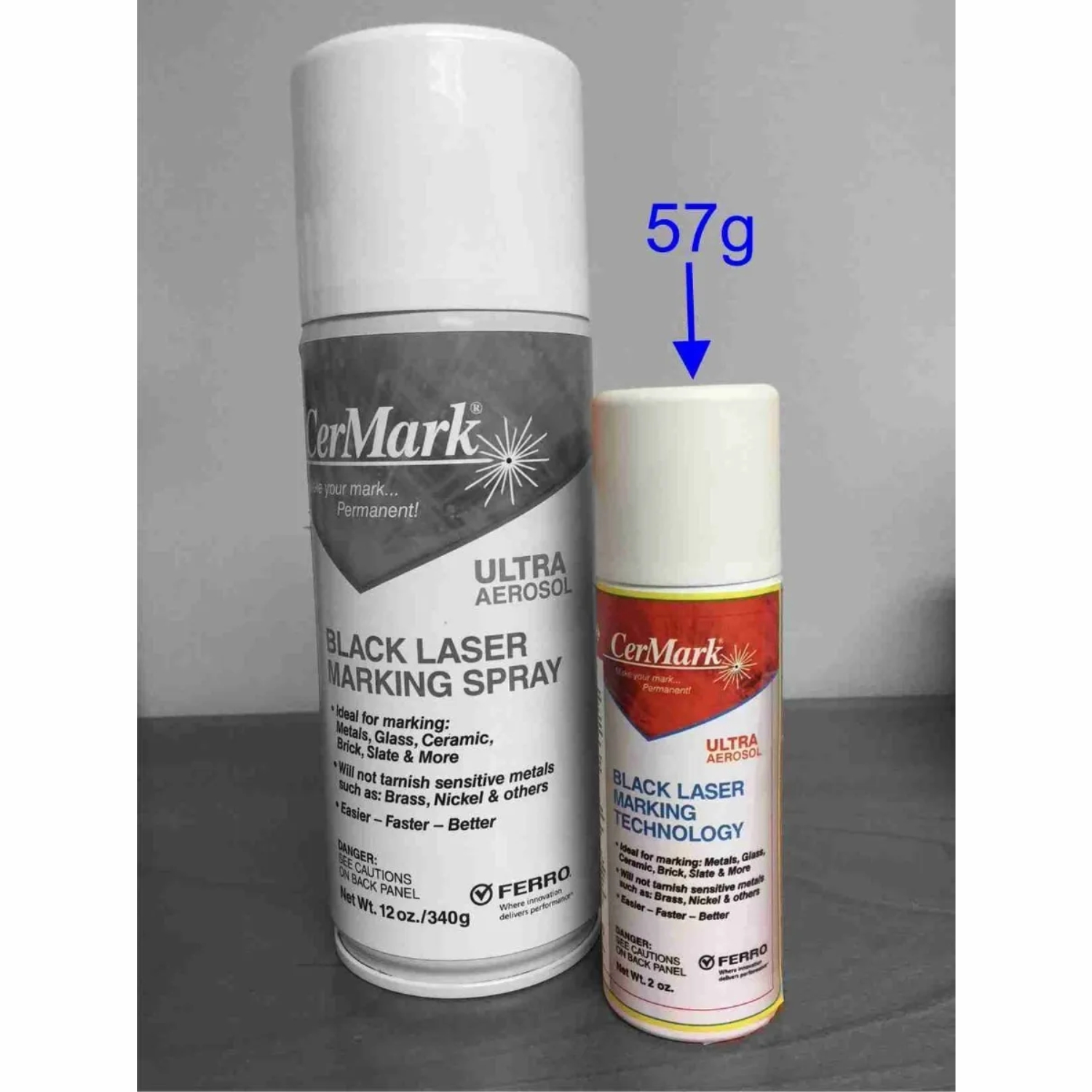 Cermark Ultra Spray lata de 2oz para grabado de metales, vidrio, piedra, cerámica con láser de CO2. (polvo negro)
